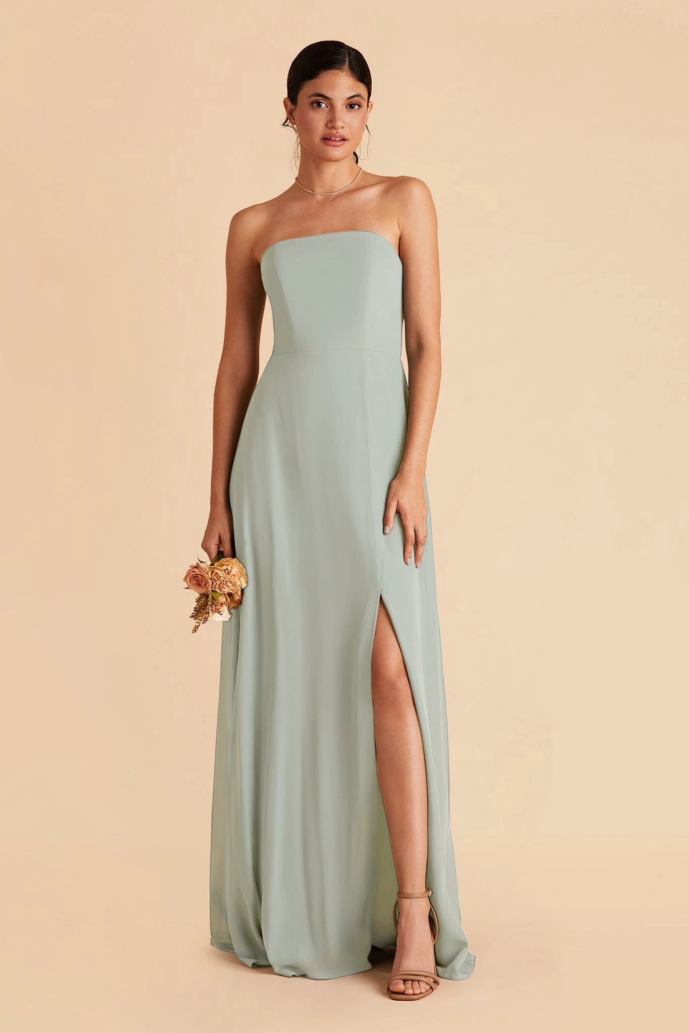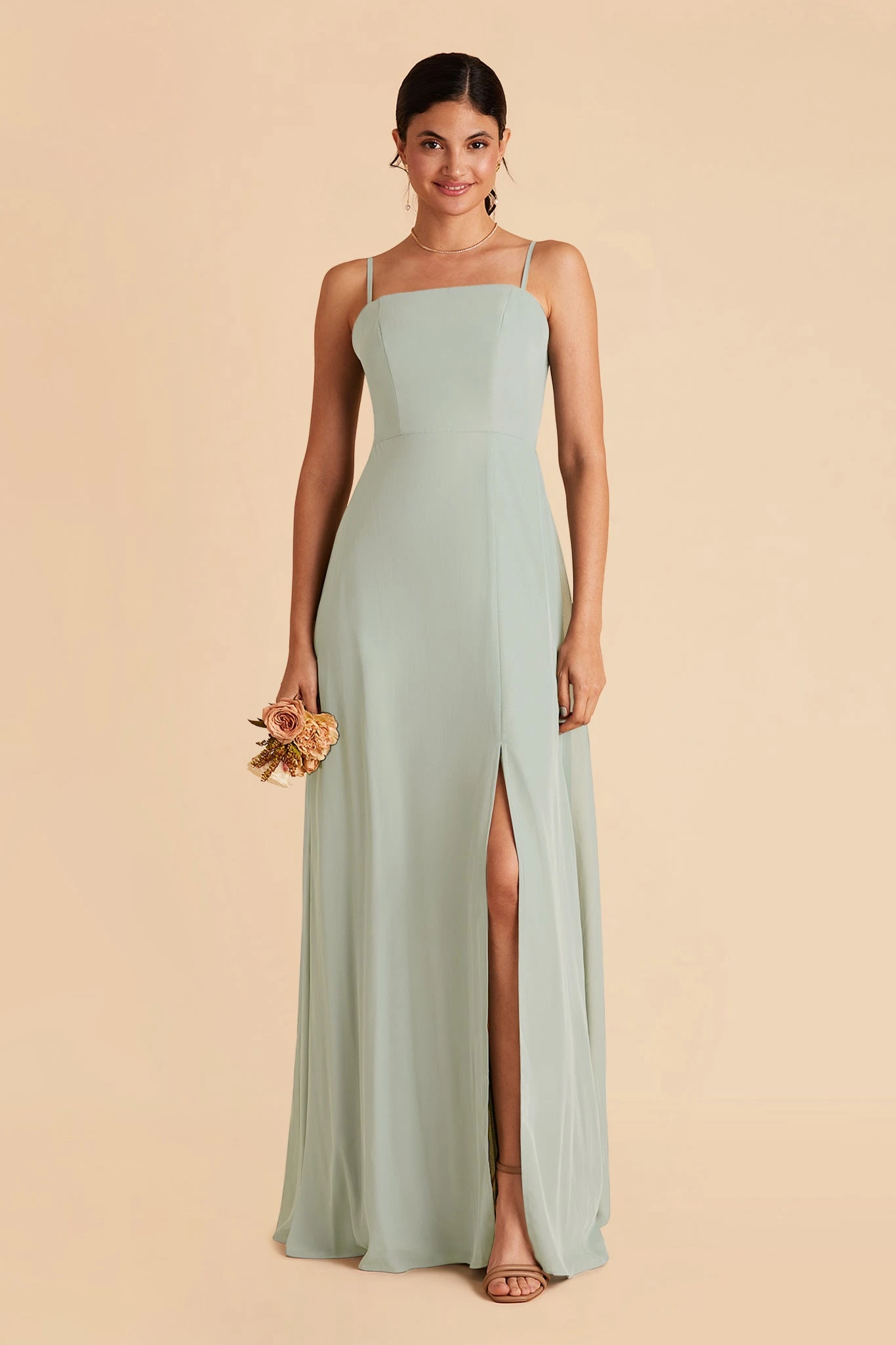 It doesn’t get any simpler than this! Our Chris convertible dress is a straight-neck gown that can be worn with spaghetti straps or with no straps at all. It features a more fitted top, with boning sewn in, for added support when wearing without the straps. Pair this ultra-low-key gown with a statement necklace or dangly earrings.