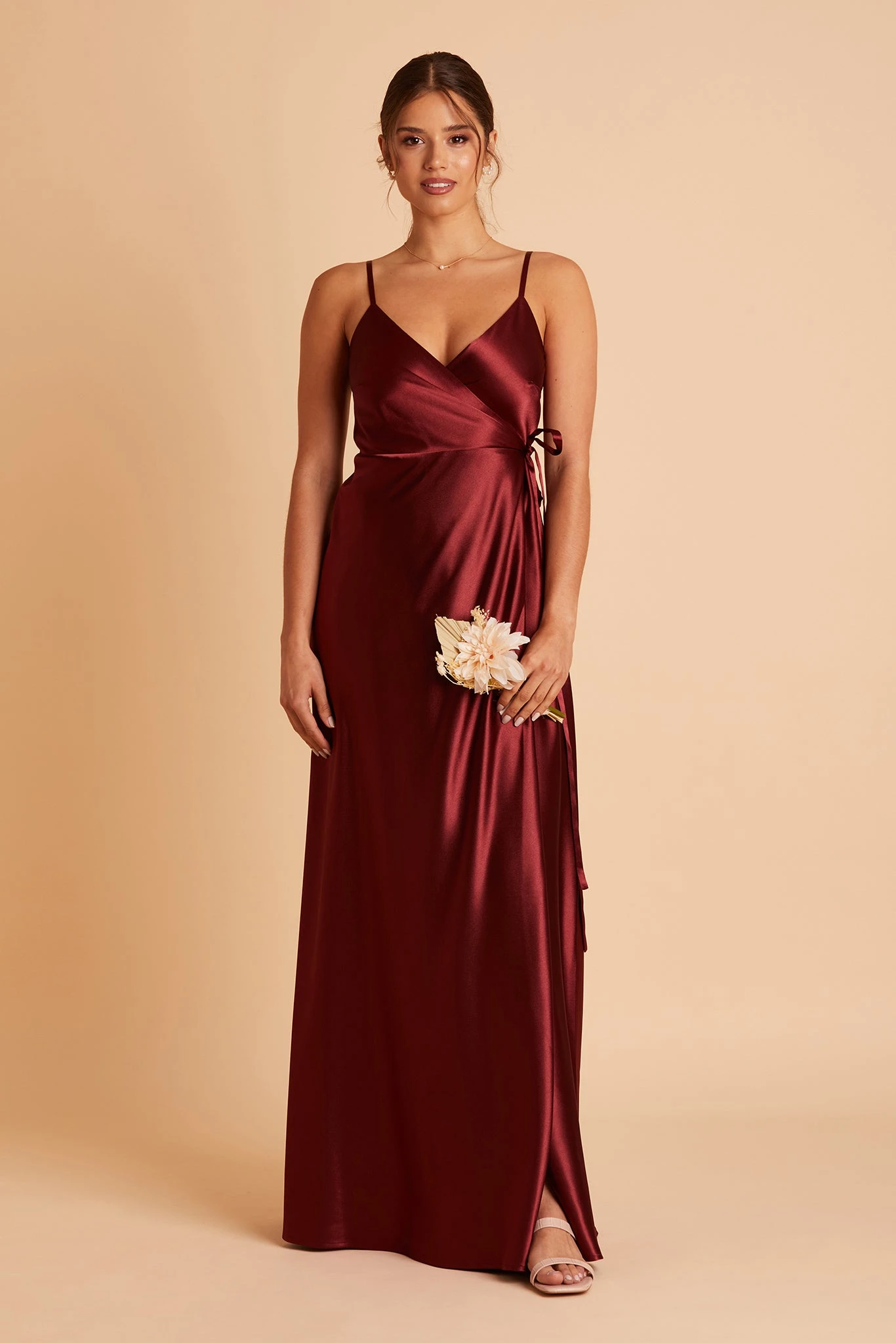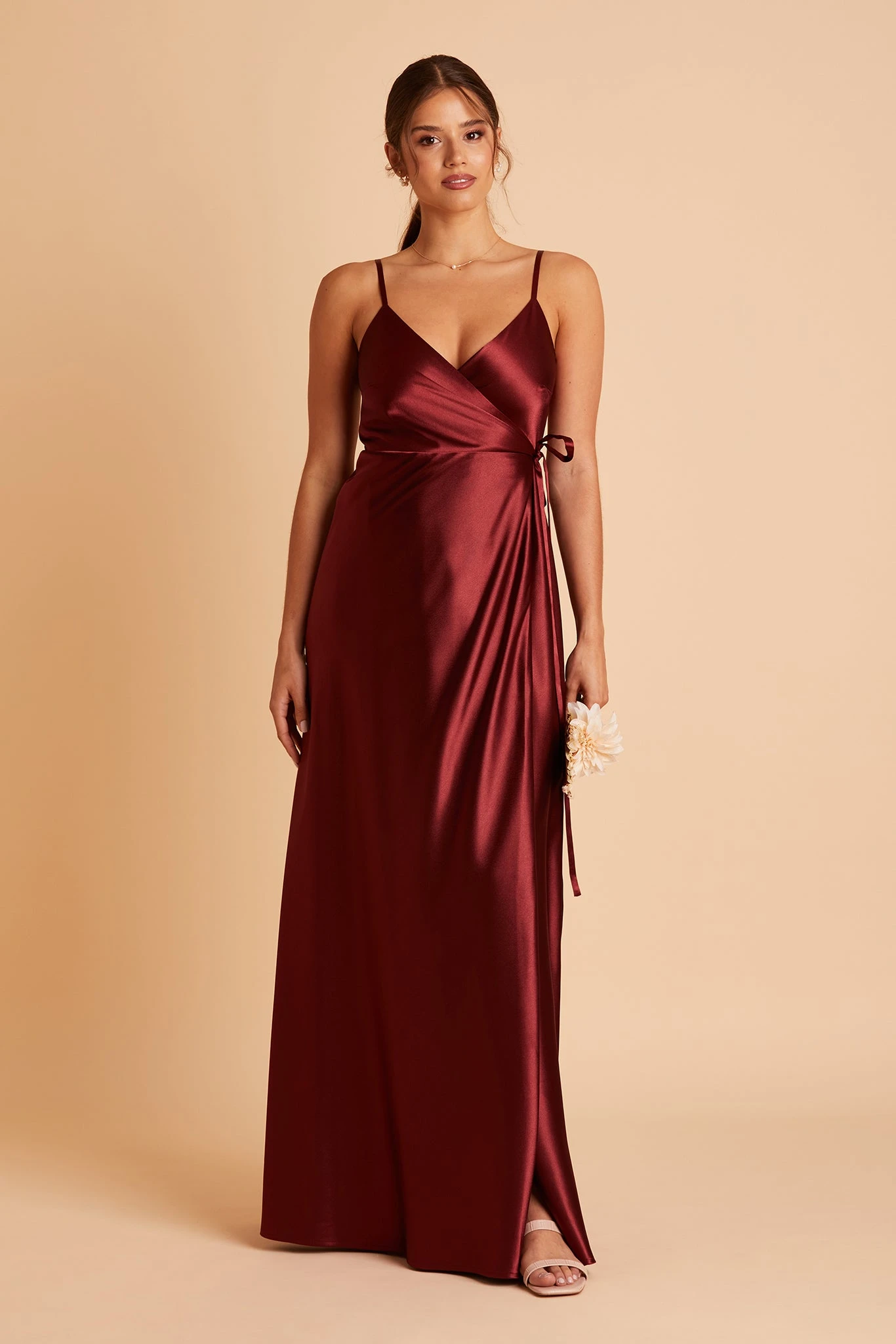 This satin wrap dress is an absolute stunner. Any bridesmaid will love how our Cindy dress flatters, emphasizing her natural waistline and elongating her frame. Perfect for a formal affair, our shimmering satin amps up the glam. The sky’s the limit when it comes to accessorizing Cindy. She pairs beautifully with dangly earrings or a dramatic statement necklace.