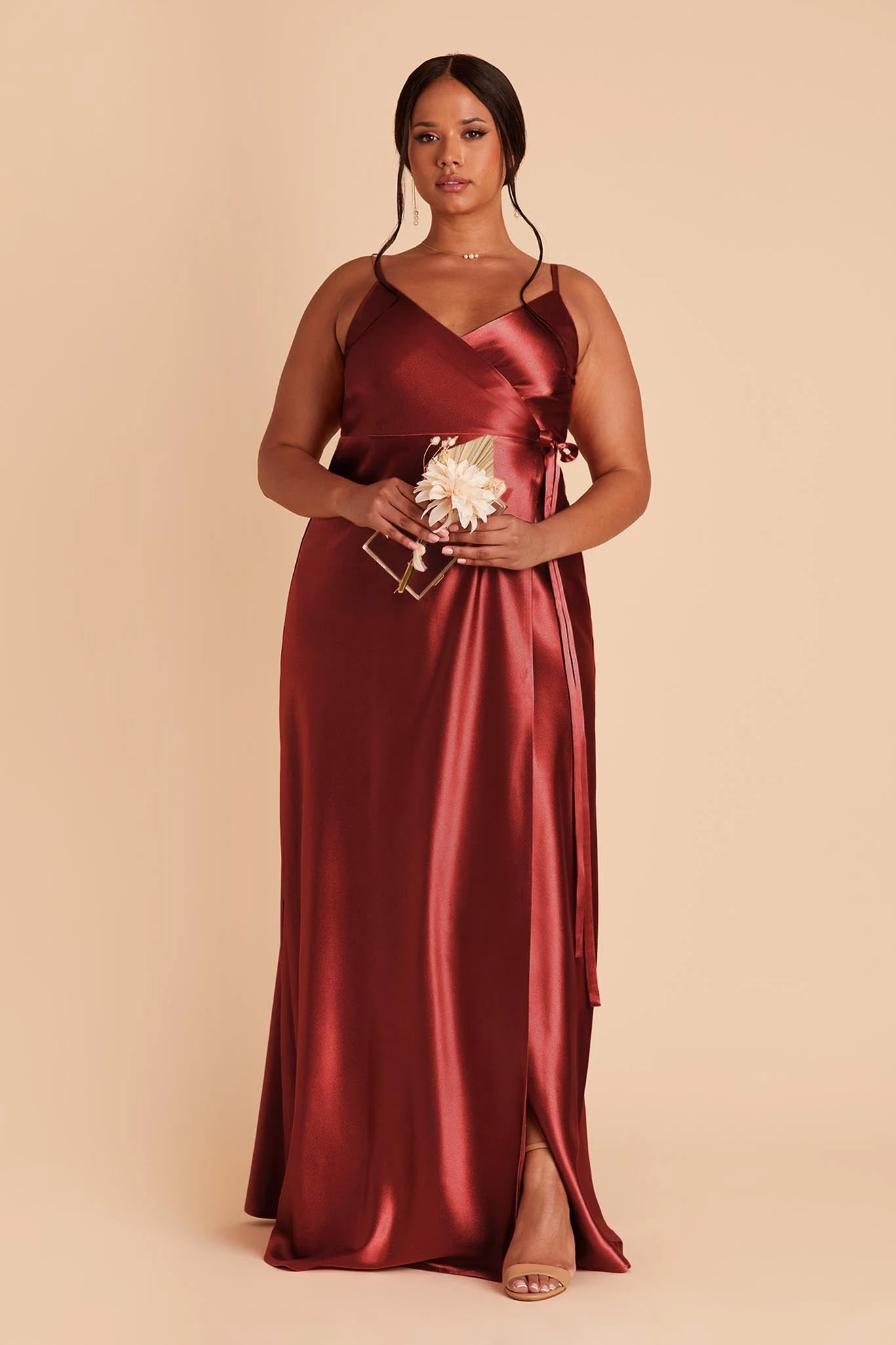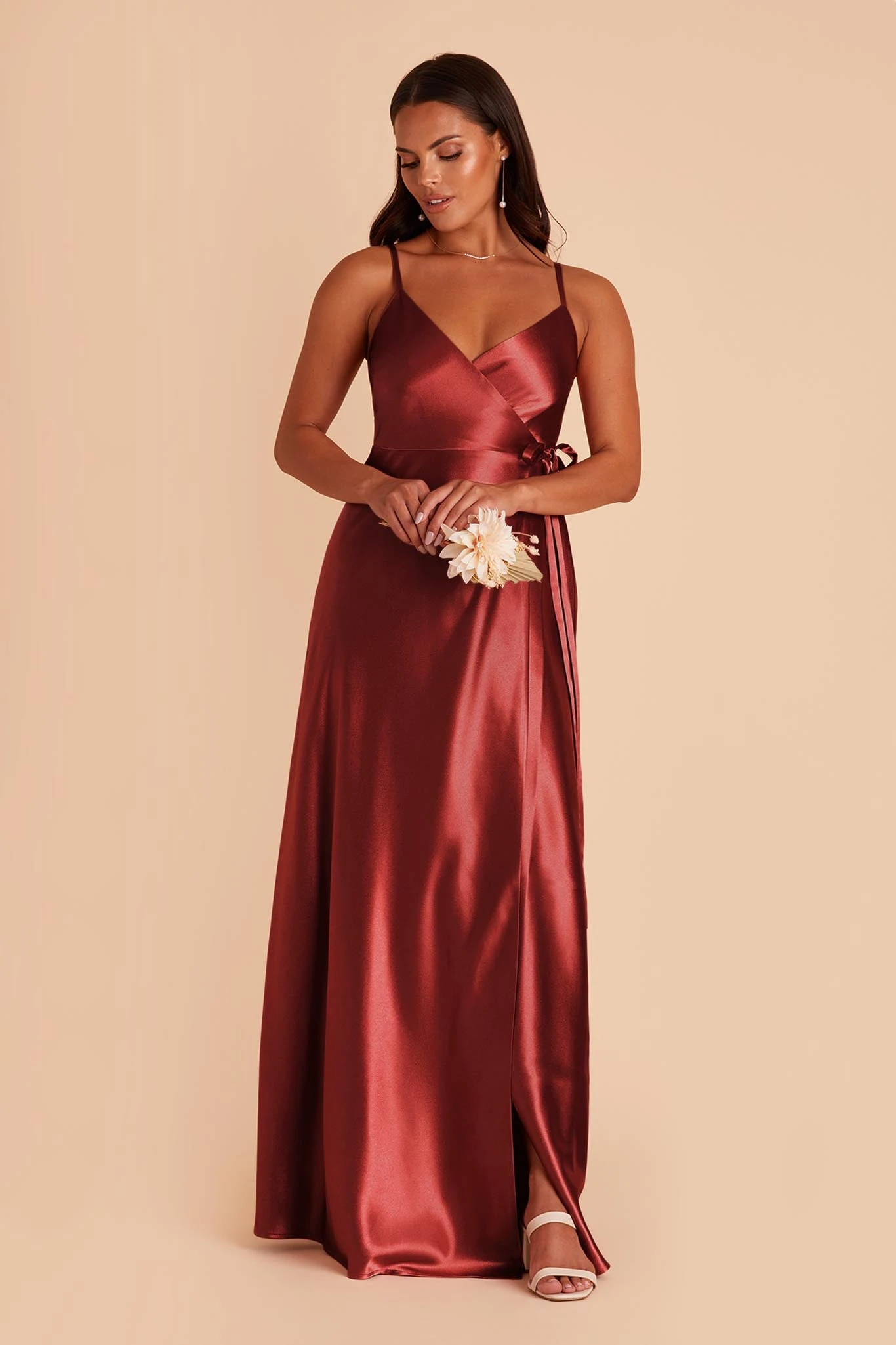 This satin wrap dress is an absolute stunner. Any bridesmaid will love how our Cindy dress flatters, emphasizing her natural waistline and elongating her frame. Perfect for a formal affair, our shimmering satin amps up the glam. The sky’s the limit when it comes to accessorizing Cindy. She pairs beautifully with dangly earrings or a dramatic statement necklace.