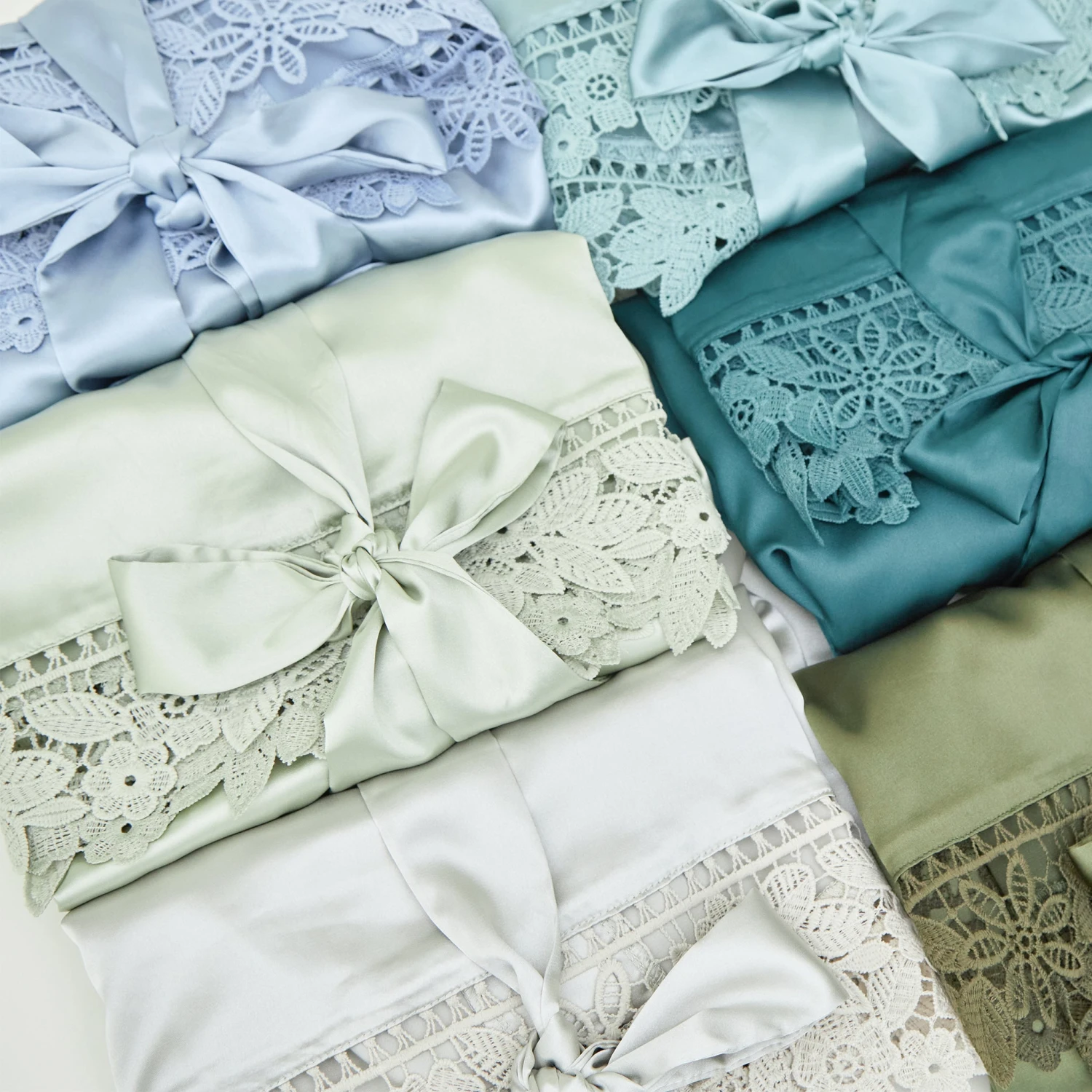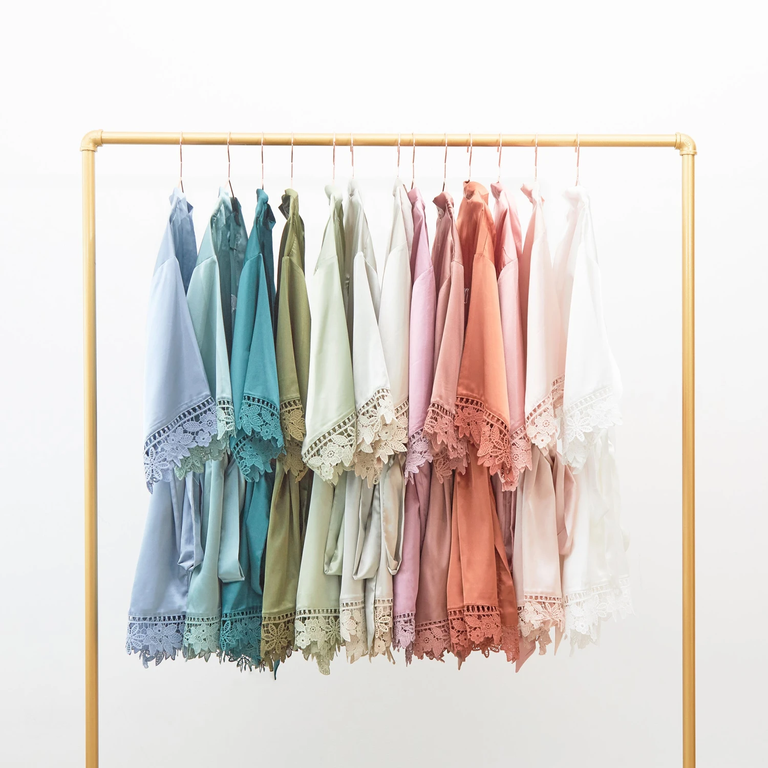 From boho to beach bride, these lace-accented satin robes make absolutely perfect gifts for your squad. Think of how sweet your getting ready photos will look with your bridesmaids in these lacy robes. Best of all, they come in 17 beautiful shades (including a white one for you!), so you can find one that complements your wedding aesthetic.