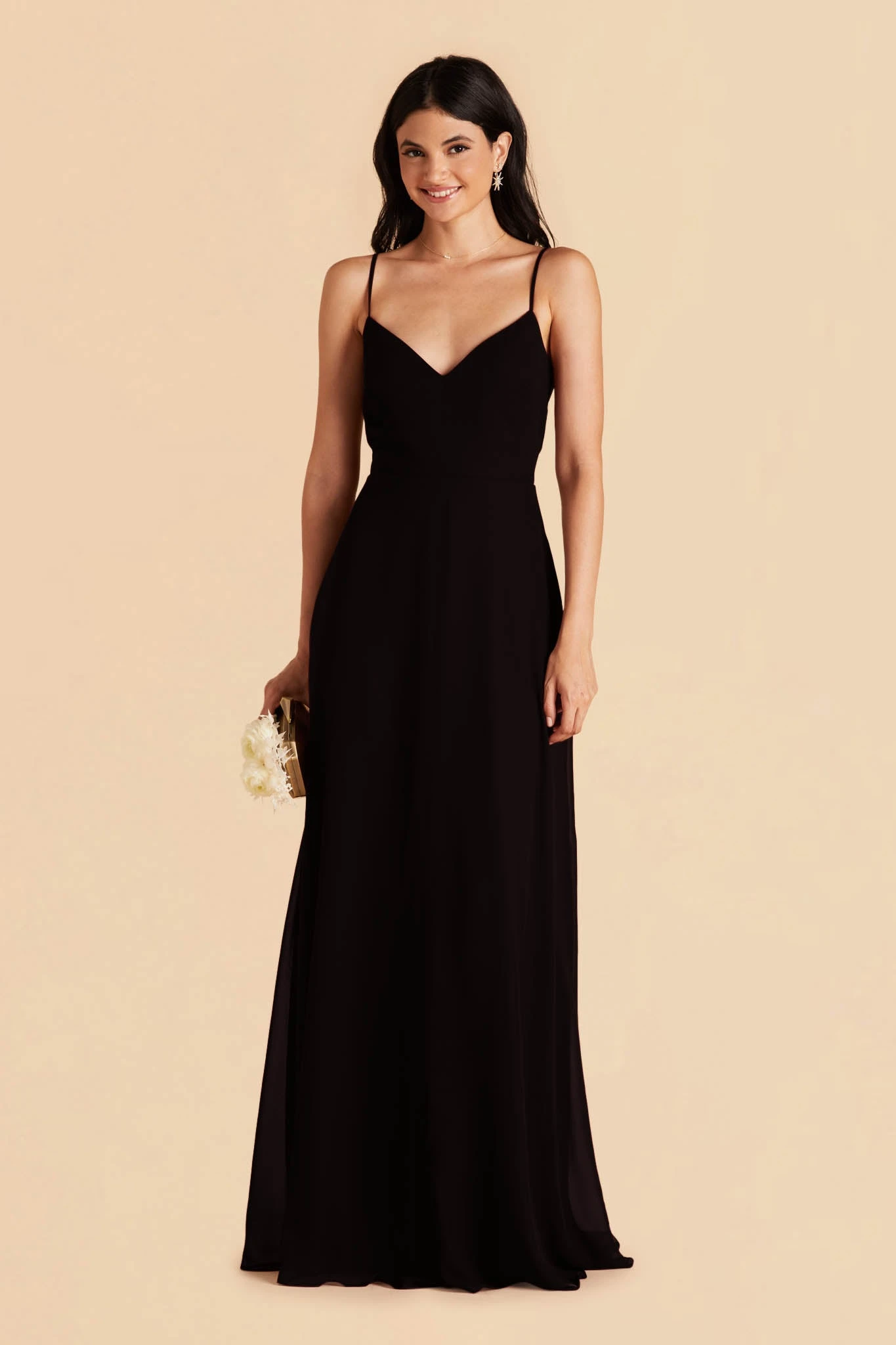 This bridesmaid dress boasts two distinct personalities: soft & romantic, modern & minimal. Thanks to the super smart detachable sleeves, your bridal squad can rock the look that makes them feel authentic while still holding true to your wedding-day vision. With the draped sleeves, it lends a pretty and romantic vibe but without it, the dress transforms to a classic and minimal V-neck with spaghetti straps. Whichever way, the dress is a standout choice for your best supporting ladies.