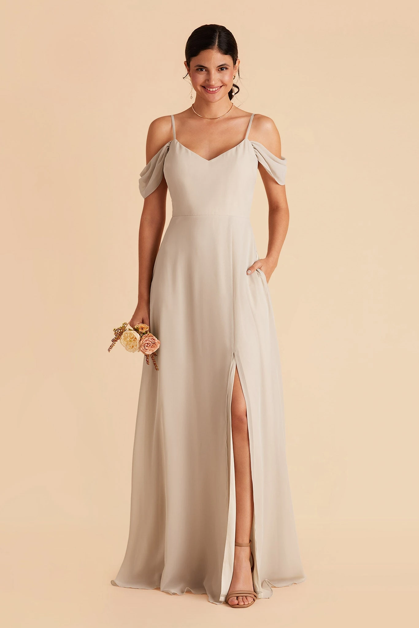 This bridesmaid dress boasts two distinct personalities: soft & romantic, modern & minimal. Thanks to the super smart detachable sleeves, your bridal squad can rock the look that makes them feel authentic while still holding true to your wedding-day vision. With the draped sleeves, it lends a pretty and romantic vibe but without it, the dress transforms to a classic and minimal V-neck with spaghetti straps. Whichever way, the dress is a standout choice for your best supporting ladies.