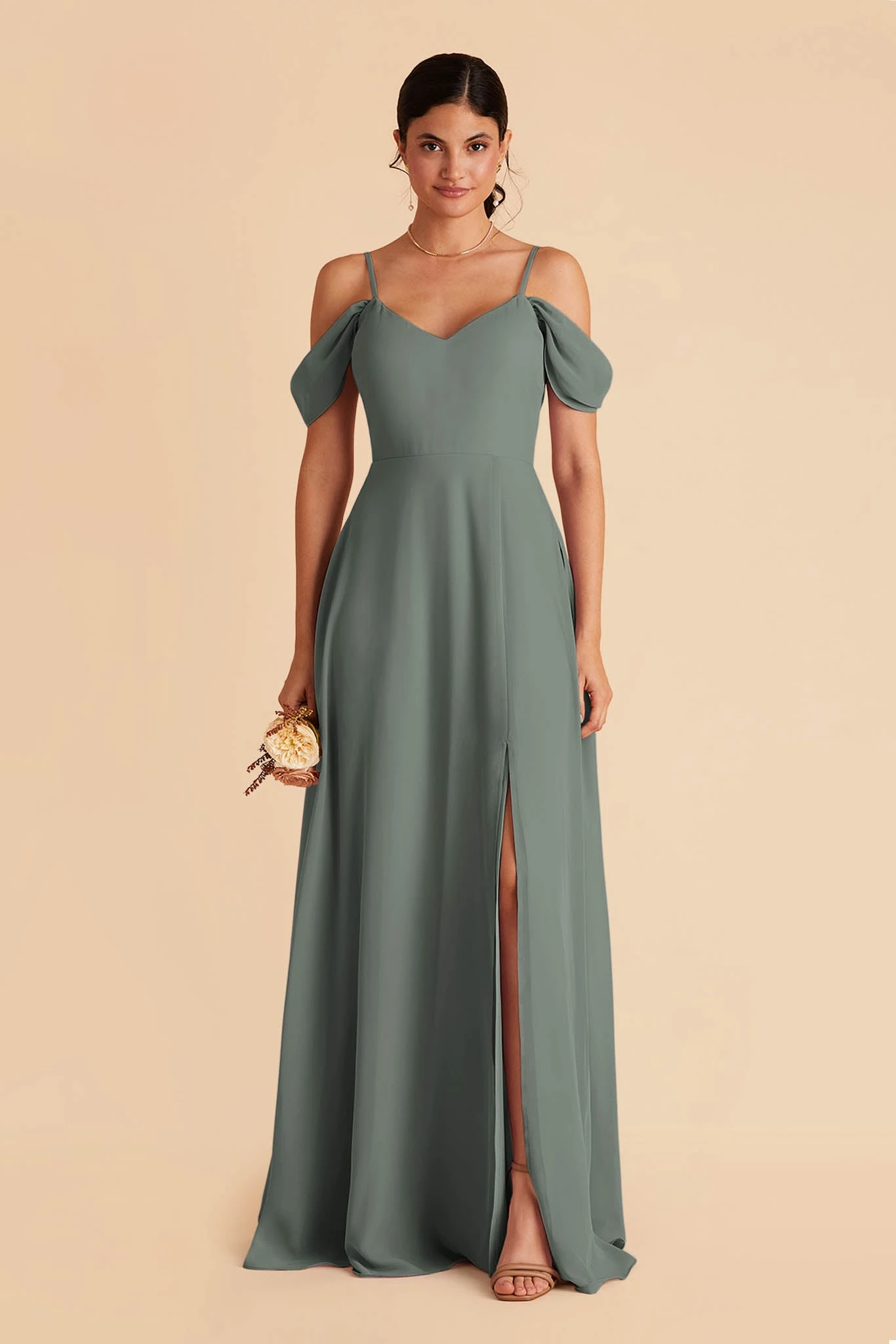 This bridesmaid dress boasts two distinct personalities: soft & romantic, modern & minimal. Thanks to the super smart detachable sleeves, your bridal squad can rock the look that makes them feel authentic while still holding true to your wedding-day vision. With the draped sleeves, it lends a pretty and romantic vibe but without it, the dress transforms to a classic and minimal V-neck with spaghetti straps. Whichever way, the dress is a standout choice for your best supporting ladies.