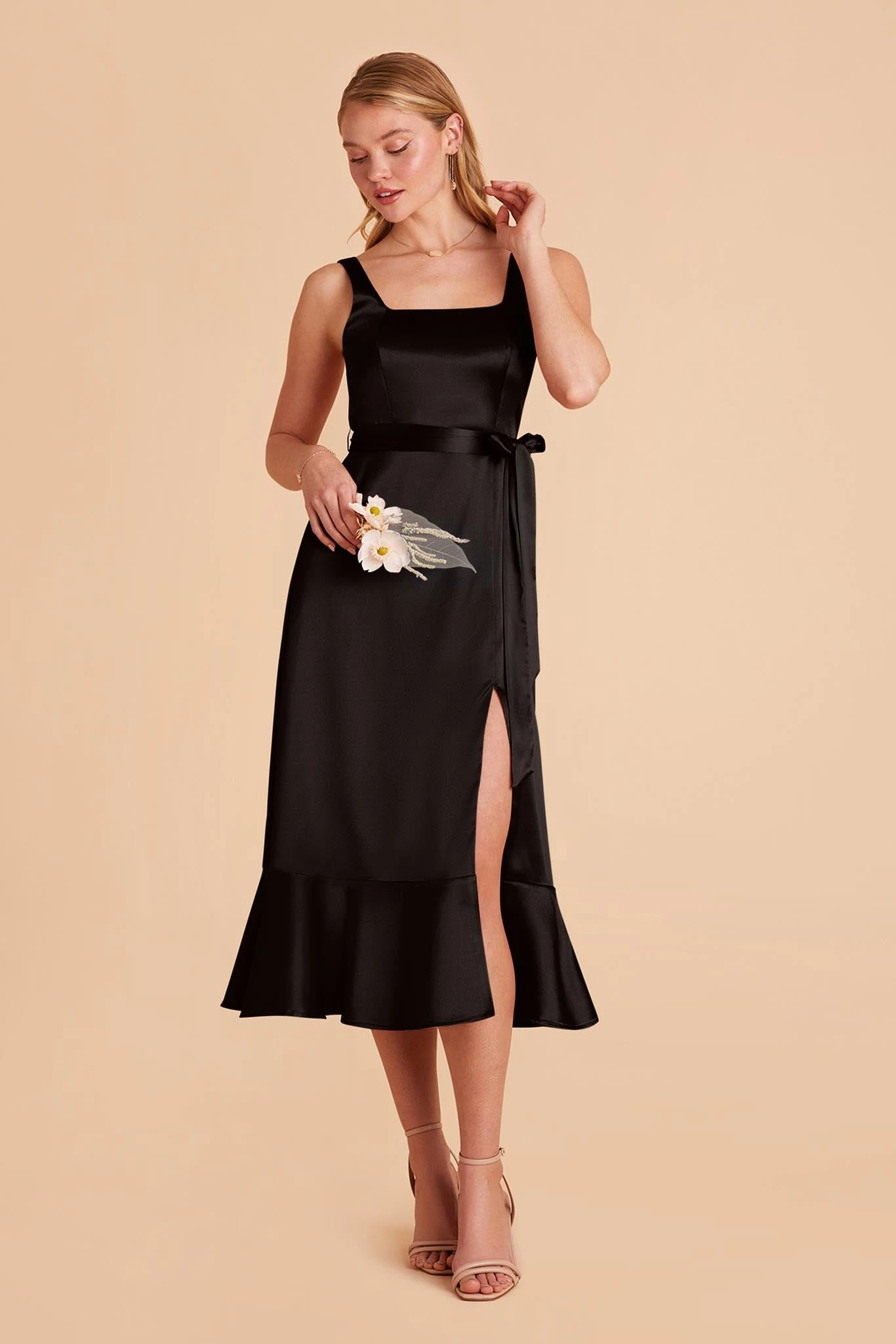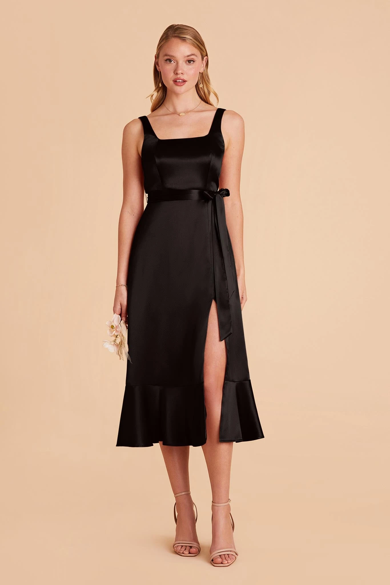Eugenia Shiny Satin Convertible Midi Dress – Black