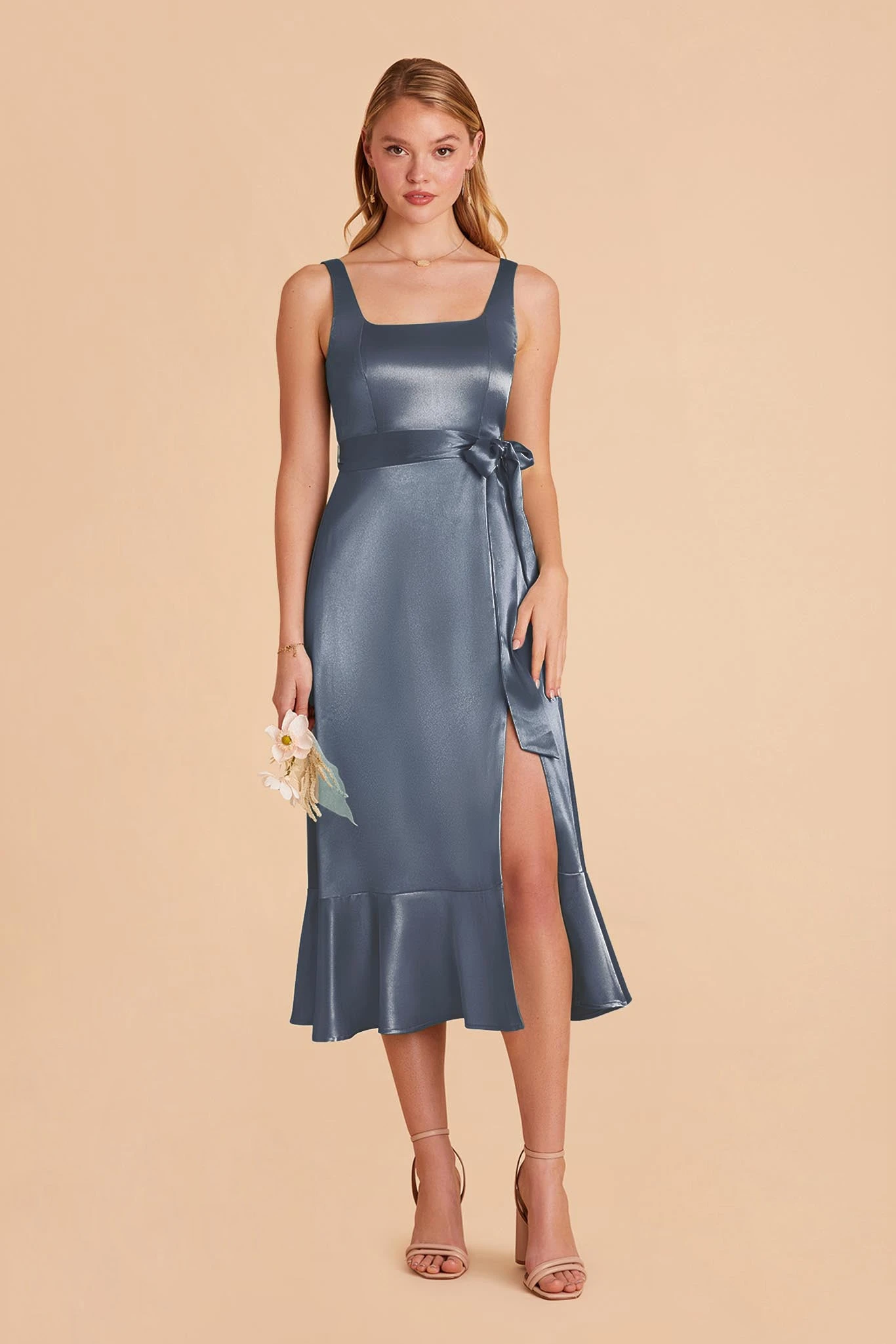 Eugenia Shiny Satin Convertible Midi Dress – French Blue