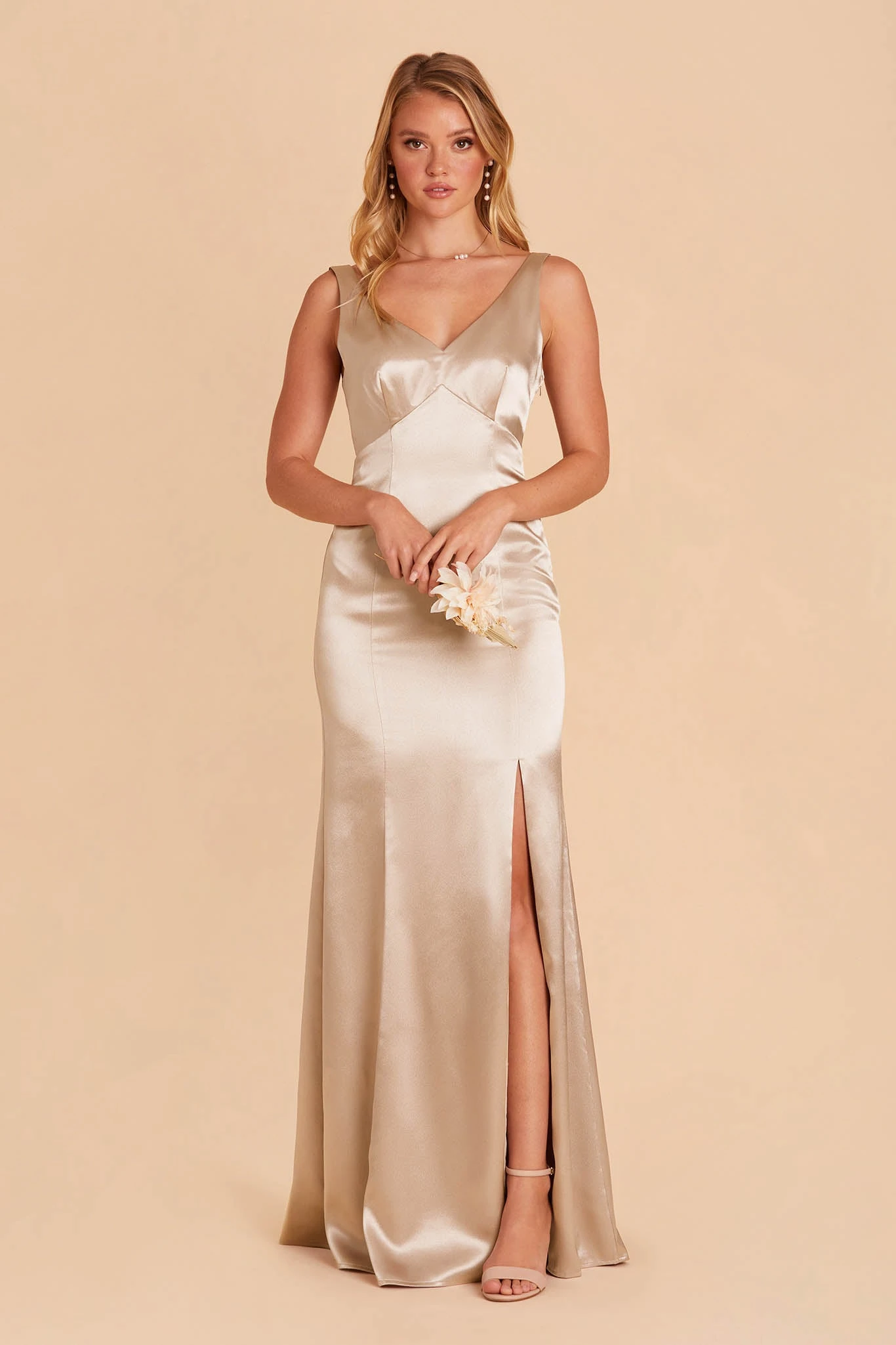 SKU: YMLYZ 7408975249599 Category: Bridesmaid Dresses Tags: Features:slit, Neutral Champagne Dresses, Shiny satin, Upsell Gold Jewelry