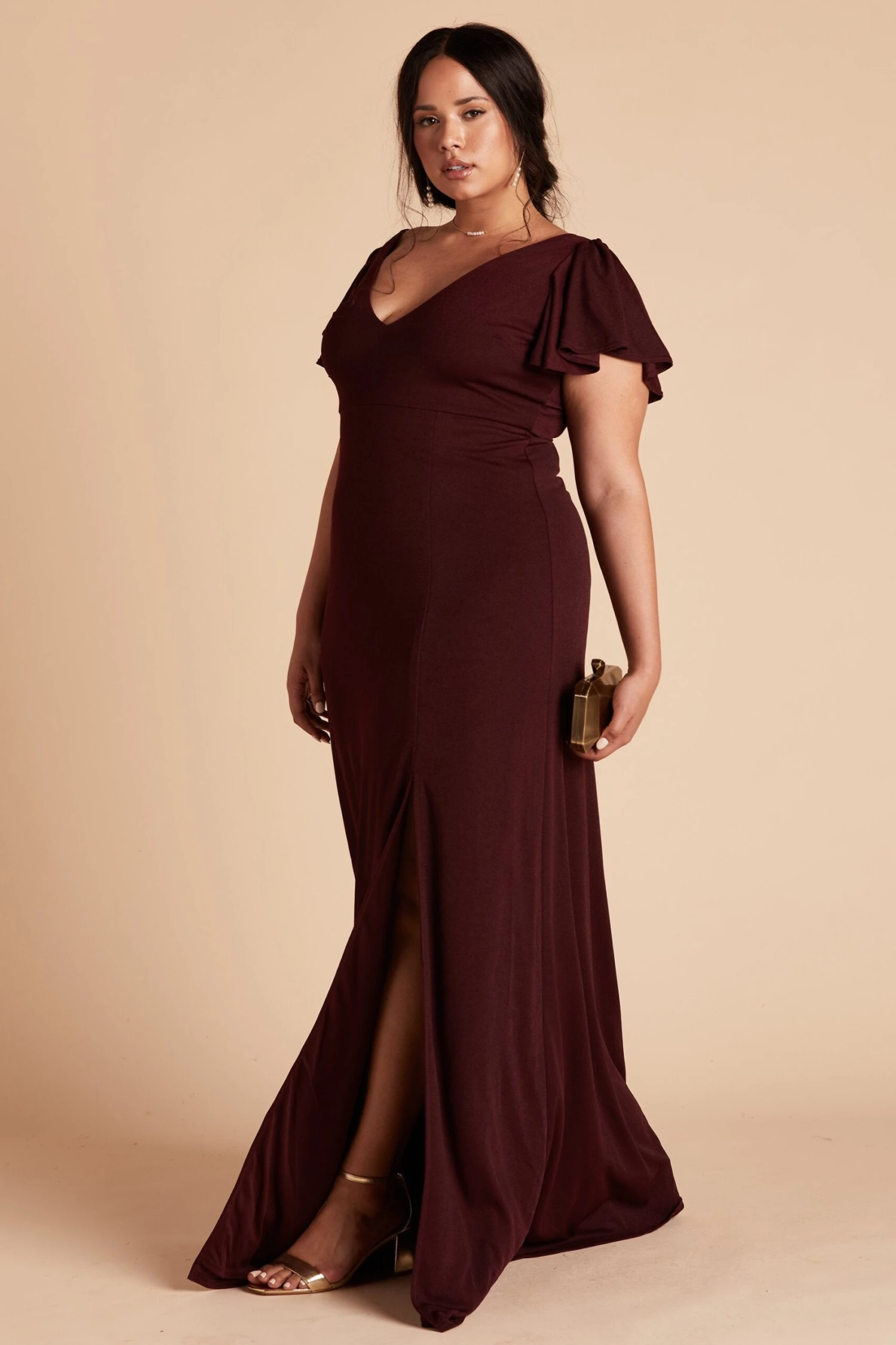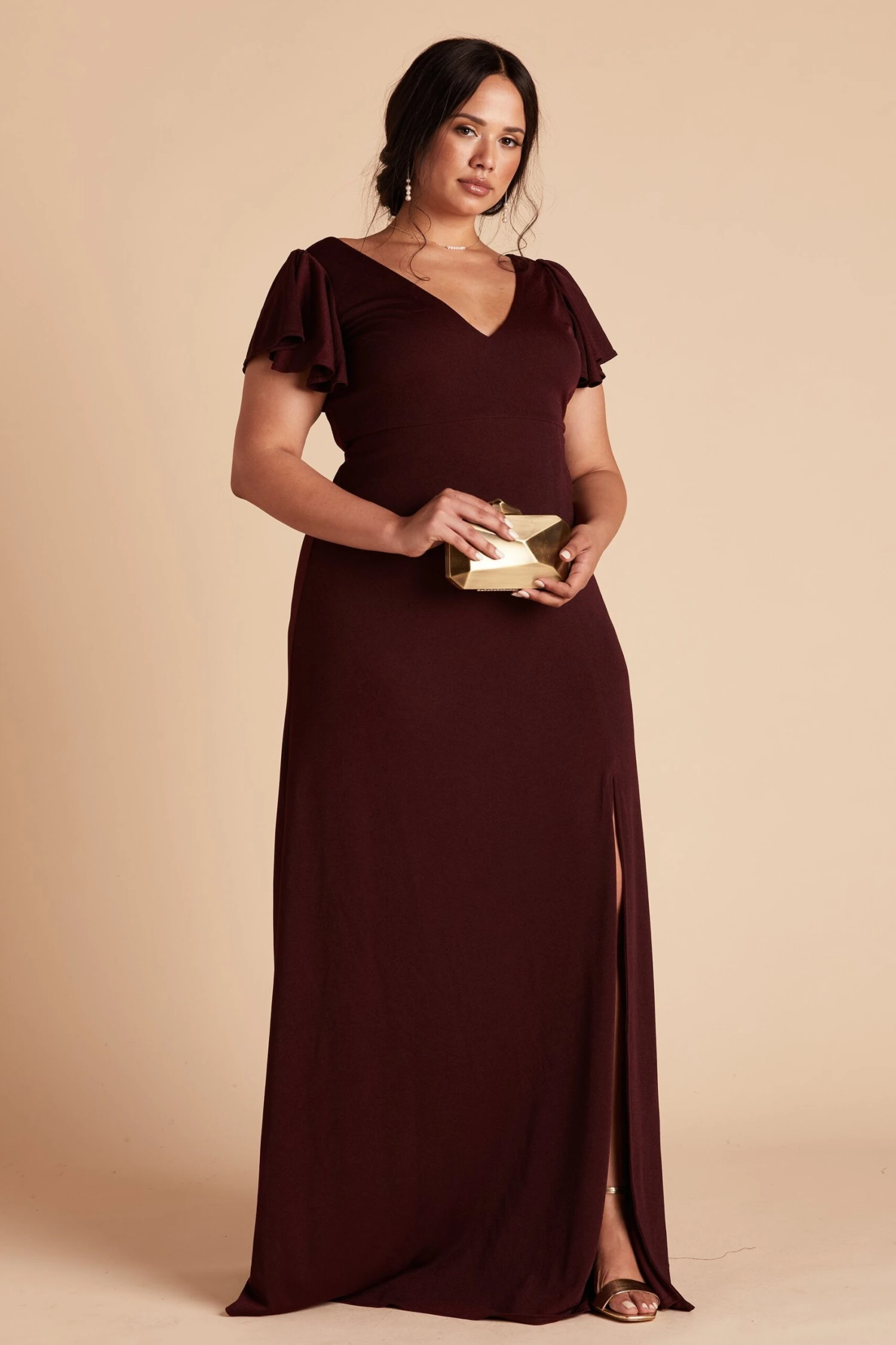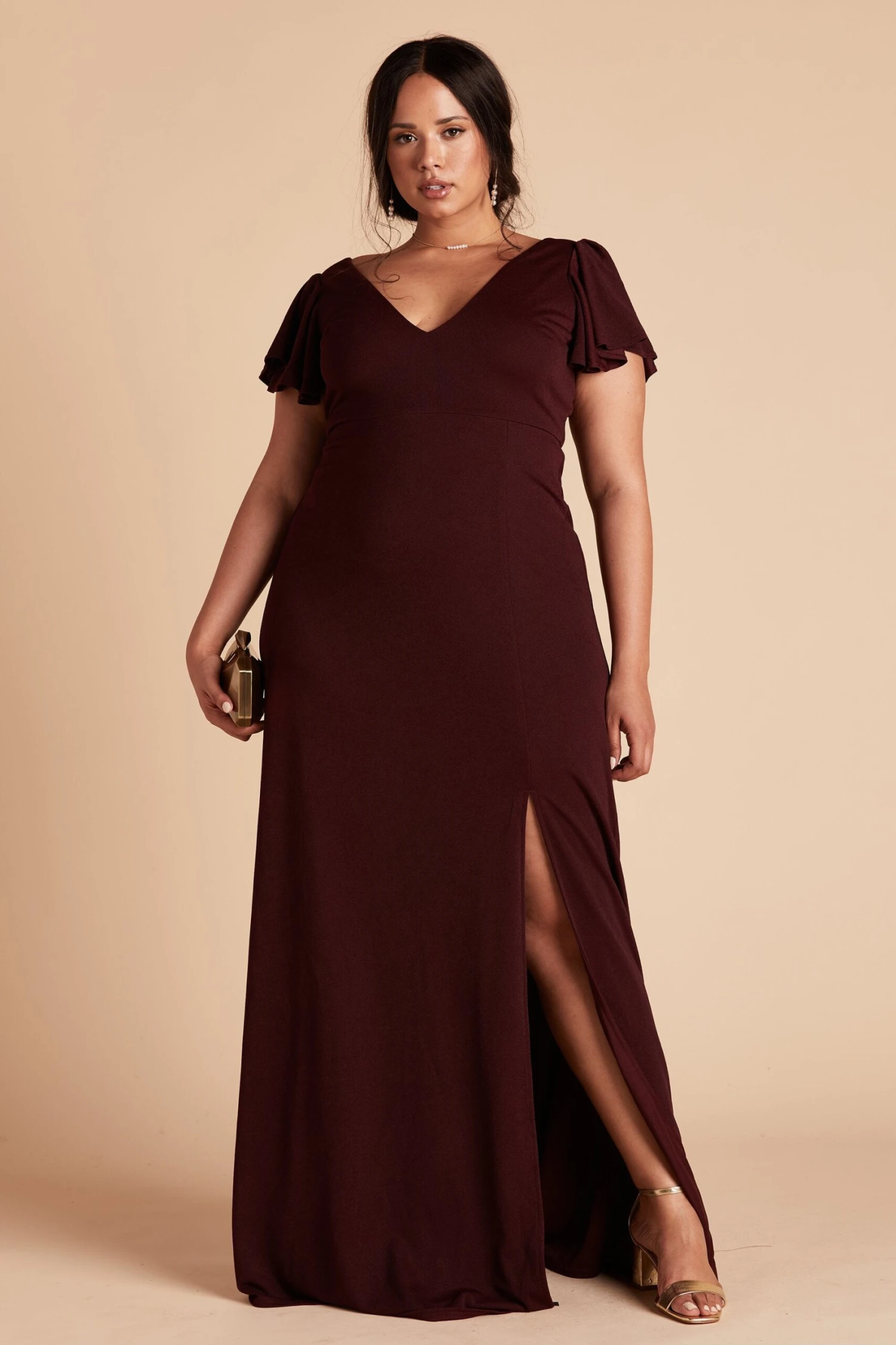 For the girl who loves a little ruffle, we present our Hannah Dress, with an empire waistline and romantic, ruffly sleeves. She features a plunging V front & back, a sexy slit, and a body-skimming silhouette that hugs in all the right places.