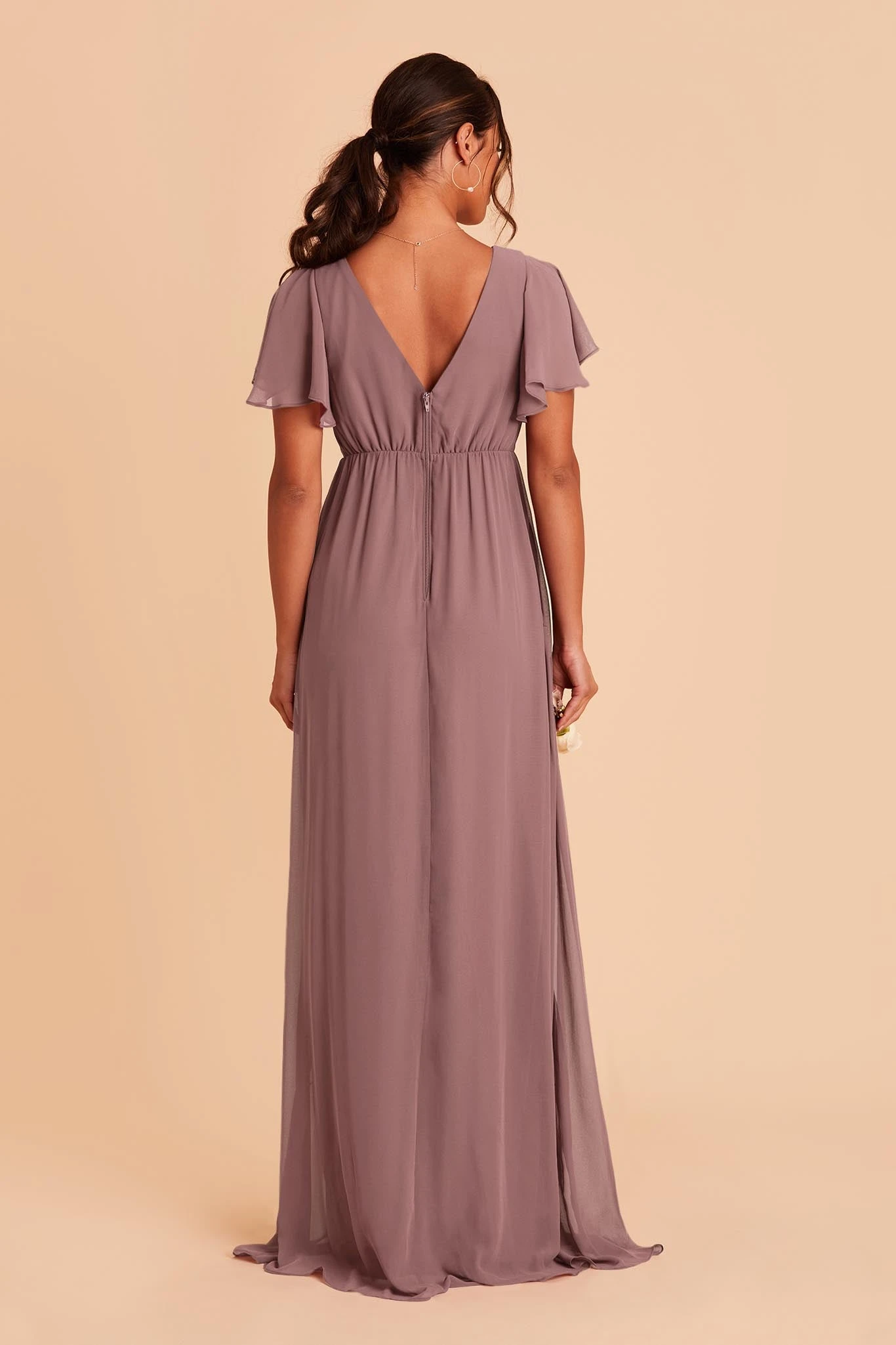 Whatever you need that extra wiggle room for—a baby bump, a second helping, extra cake, or if you simply prefer more breathing room, Hannah is the girl for you. Spun of lightweight chiffon, this dress won’t ever weigh you down while floating down the aisle or getting down on the dancefloor (no one said a bump should keep you from having fun!). The key here is the raised empire waist fitted with a stretchy elastic that’s especially great news for expecting moms. The flutter sleeves add a sweet touch while also offering comfy arm coverage.