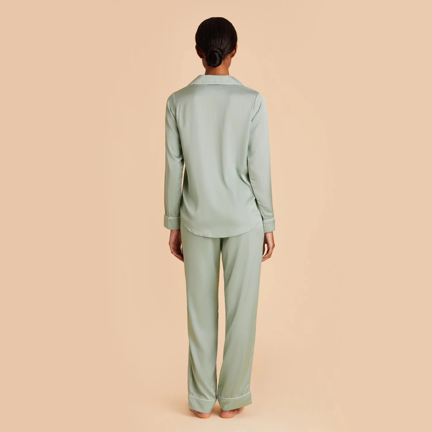Jonny Long Sleeves And Pants Satin PJ Set – Sage