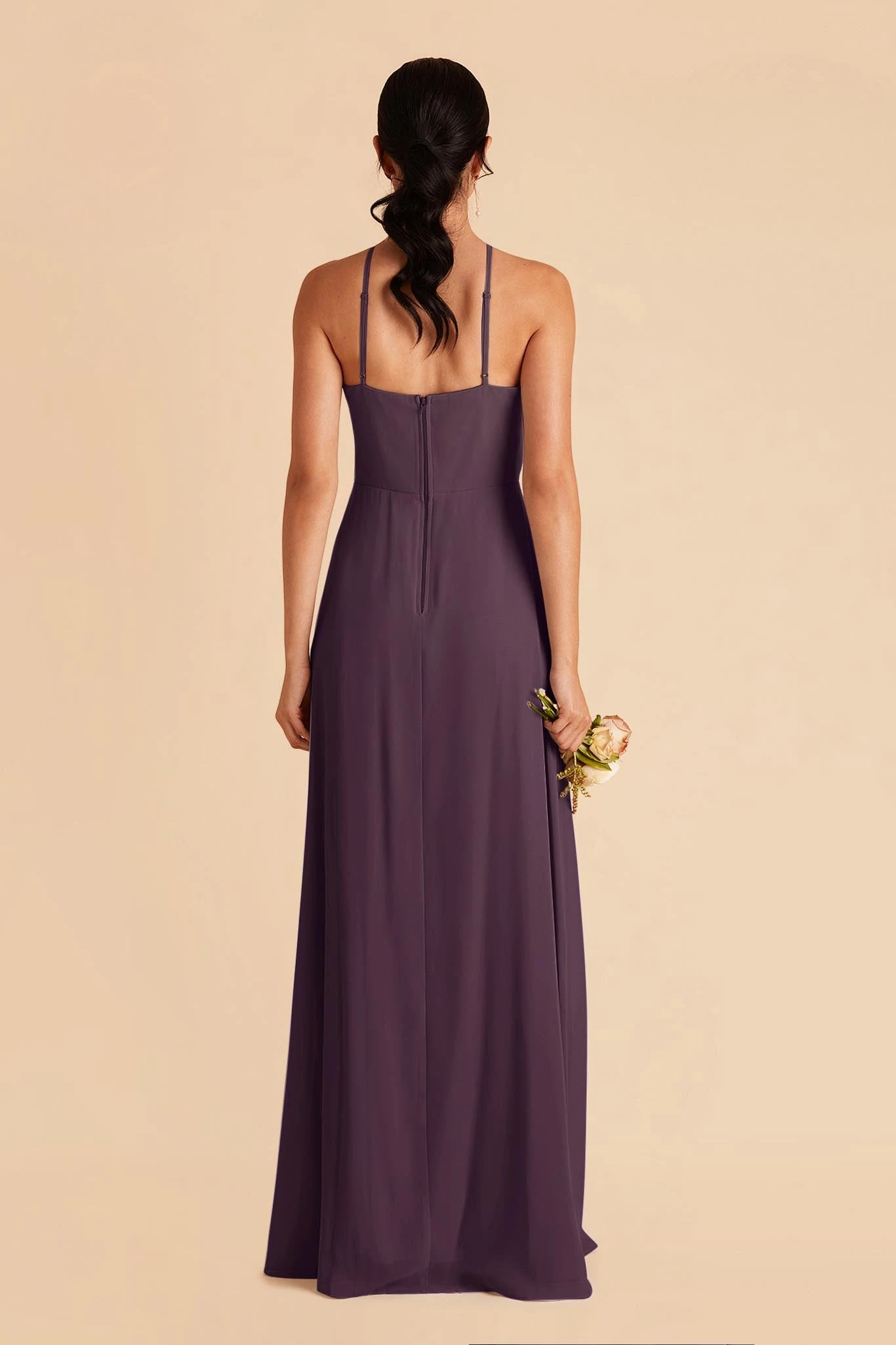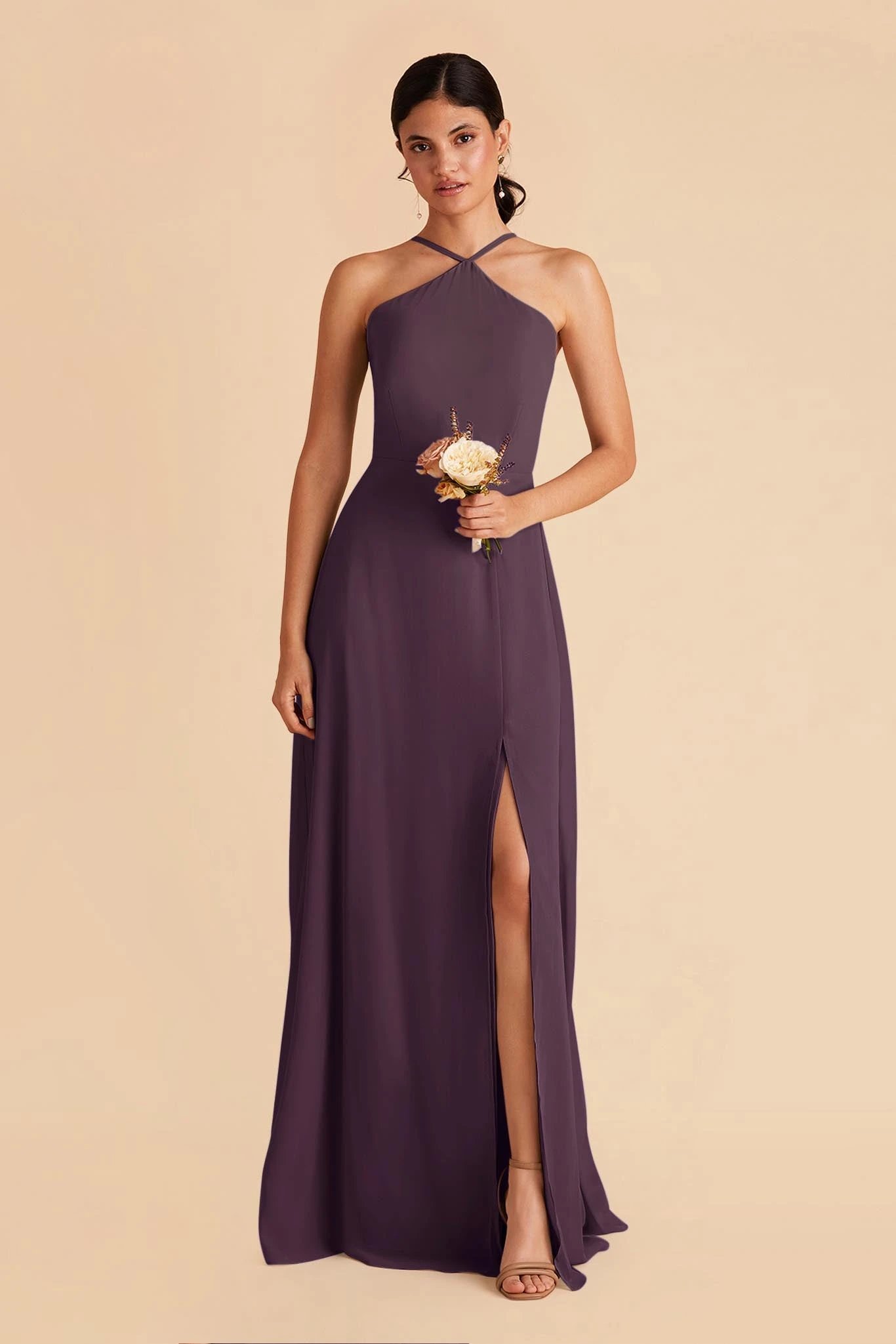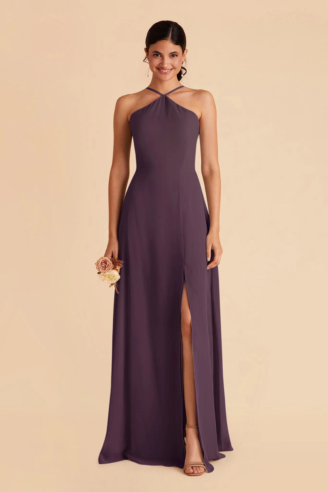 Less is more with this thin-strapped halter bridesmaid dress. Juliet also features a slimmer, more minimal skirt design, that dials up the sleek factor in a big way. She’s perfect for the bridesmaid who’s looking for a simpler design but still wants the elegance of chiffon.