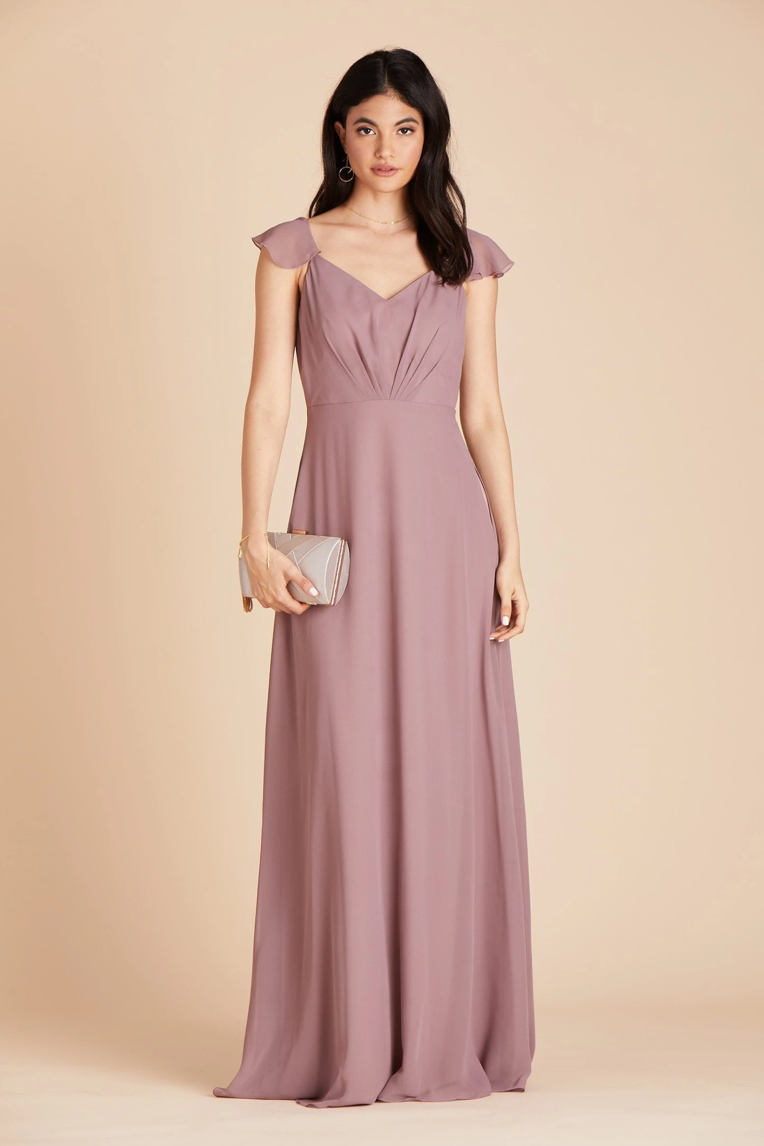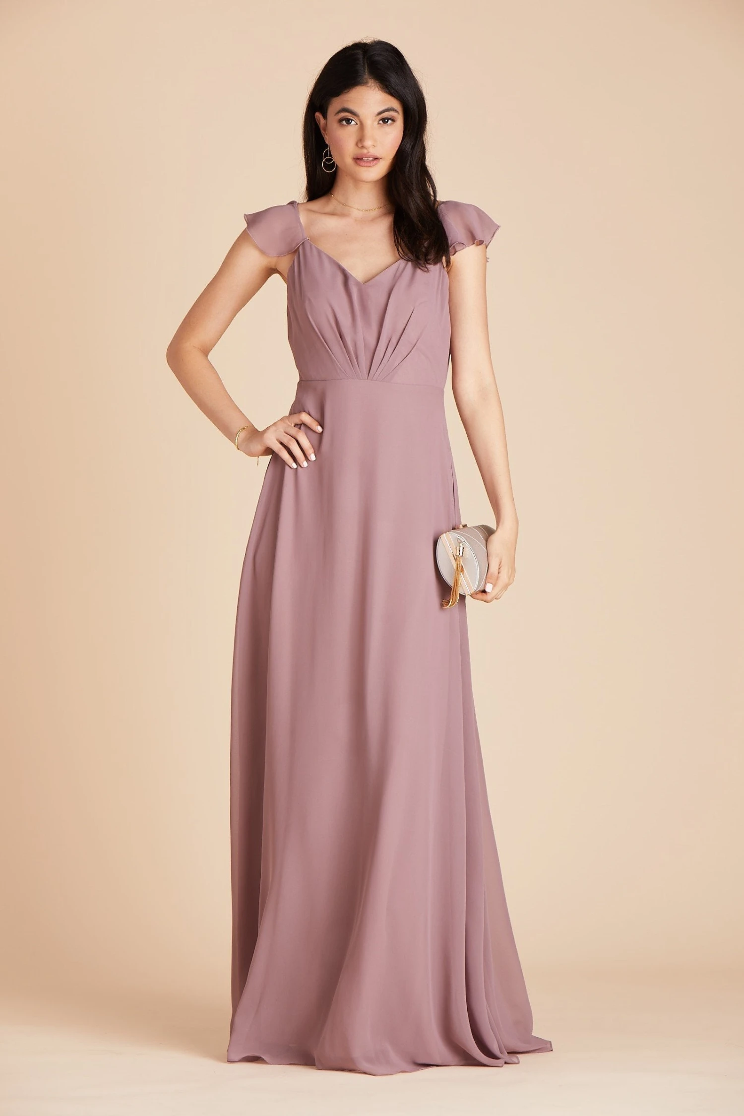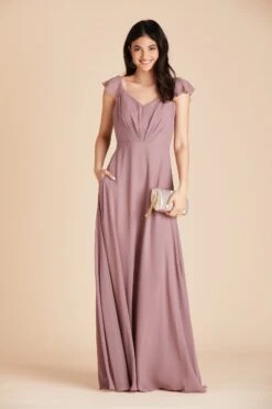 The sweetest of them all. This long floor-kissing bridesmaid dress features ruffled cap sleeves that give you just enough arm coverage without looking doudy (who wants that?) and gives you full mobility for all those bridesmaid duties. We’re especially smitten over the crisp gathering in the front and the V-shaped back that makes for the prettiest silhouette without it being too sexy. With the Kae bridesmaid dress, you’ll be waltzing down the aisle on your bestie’s big day while looking like an absolute angel.