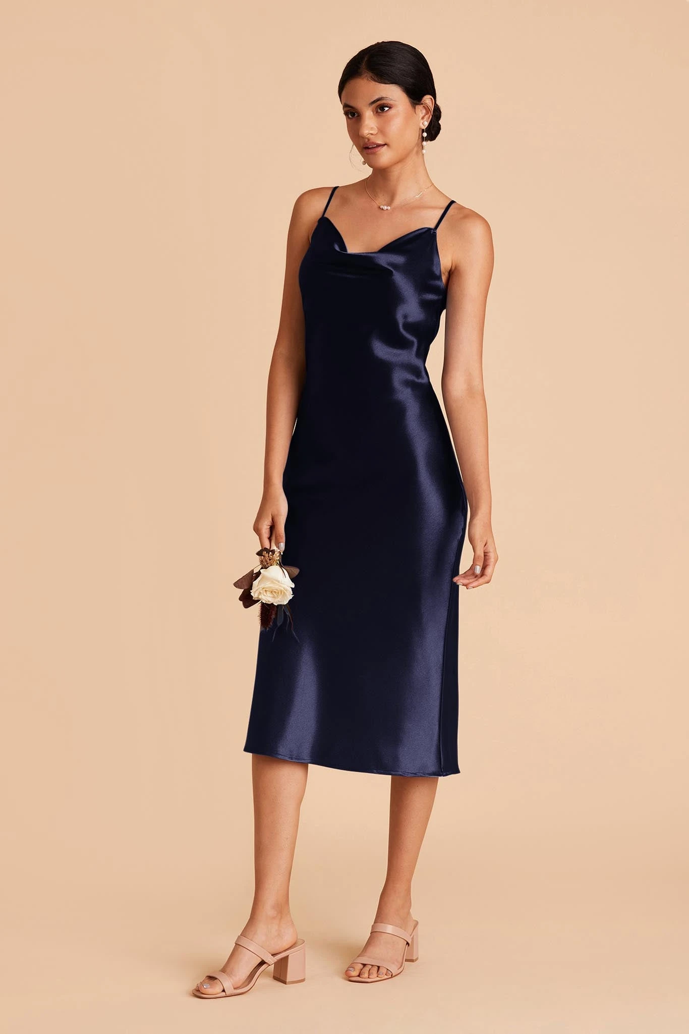 Lisa Shiny Satin Midi Dress – Navy
