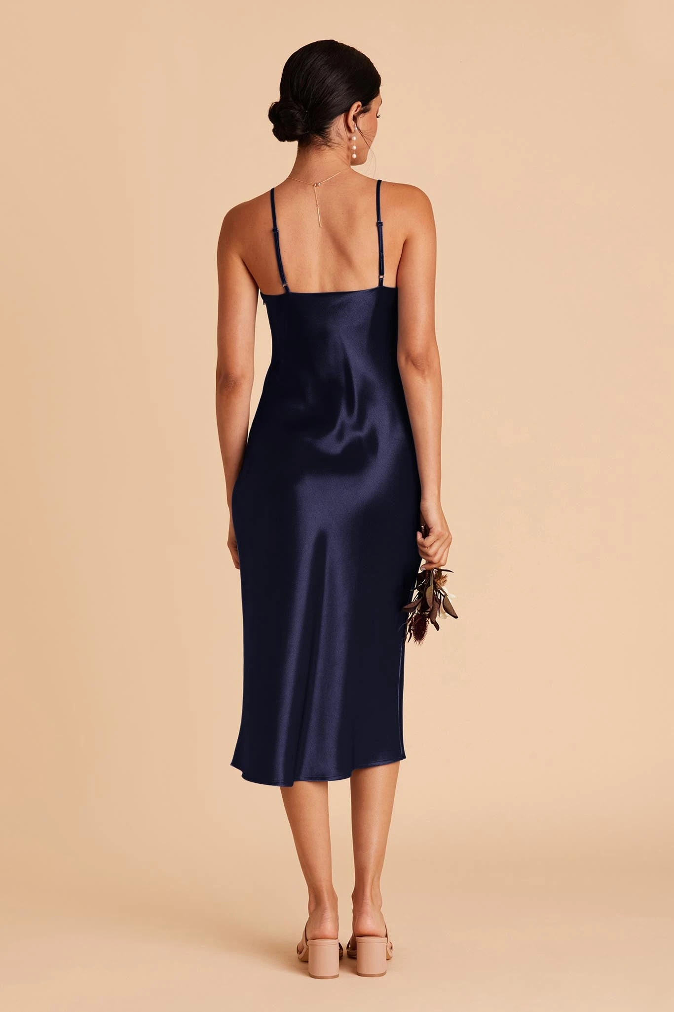 A fresh take on the ’90s classic, our Lisa Satin Midi in black is the *perfect* satin bridesmaid dress you’ve been looking for. Spun from a super luxe, shiny poly satin, she features skinny adjustable straps and light cowling in a bias-cut midi silhouette. Needless to say, she’s our top wear-again dress that you can easily style with a slouchy sweater and a boho hat for farmers market runs or a fun date night.