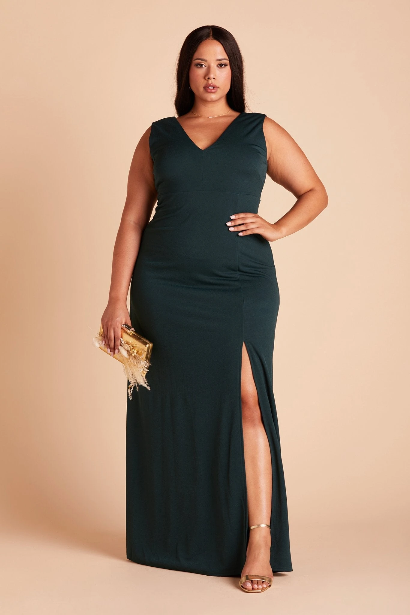 Sleek, modern and minimal is our Shamin bridesmaid dress, featuring a plunging V neckline and body-skimming fit. She’s designed in a comfy stretch knit crepe with a sexy front slit to show off a flash of skin. We can’t say this about all bridesmaid dresses, but she’s one you can definitely rock again long after the wedding.
