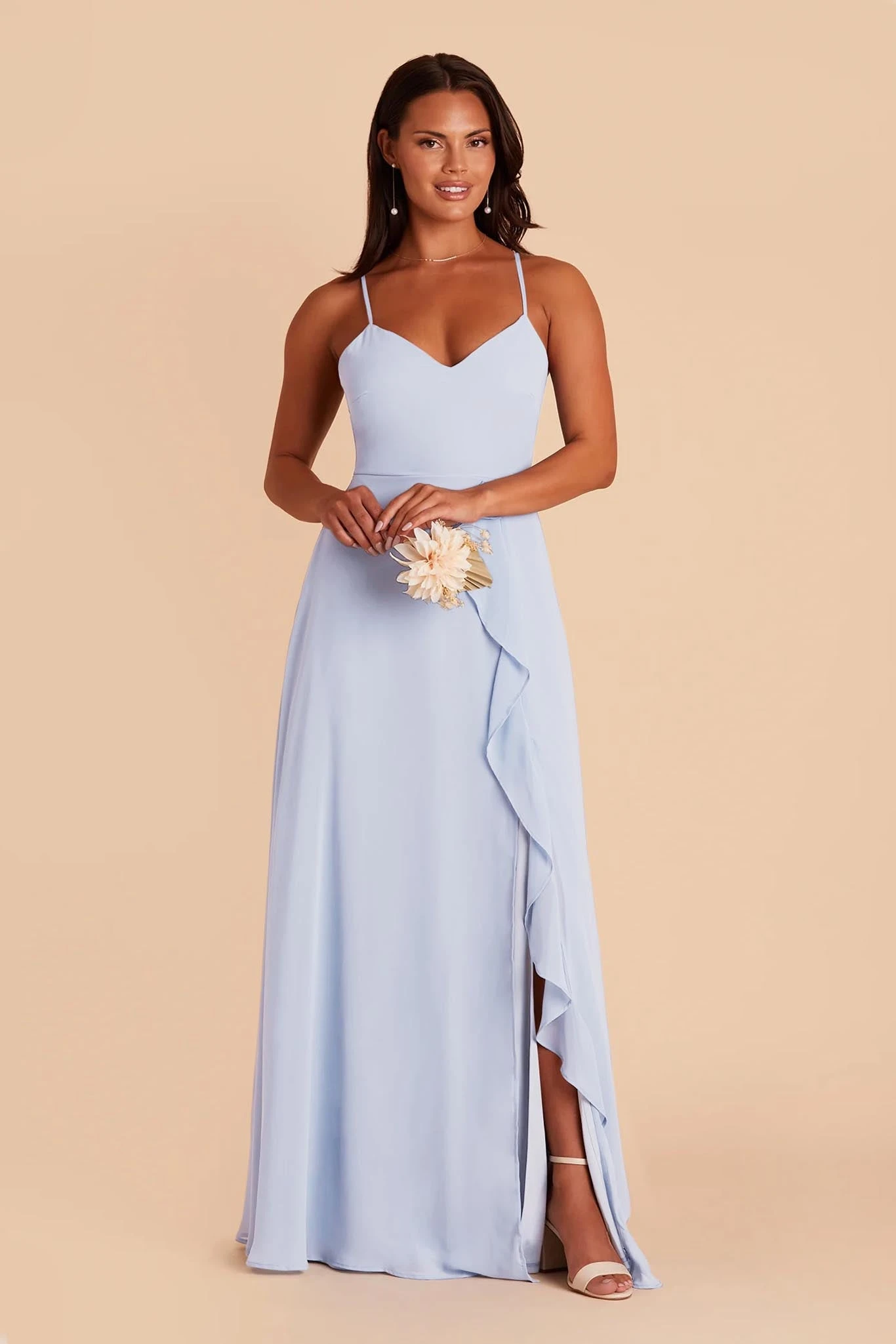 Timeless style, meet ultimate breathtaking details. We think you’ll be the perfect match. The downright class of this understated, super flattering bodice paired with a chiffon ruffle cascading down the leg slit gives a waterfall effect while you strut down that aisle. You still get all the side-slit sass, just elegantly softened with a feminine ruffle. Talk about the best of both worlds. Plus, the adjustable spaghetti straps with two ways to wear give you all the comfy options to make sure you’re dancefloor-ready all night long.